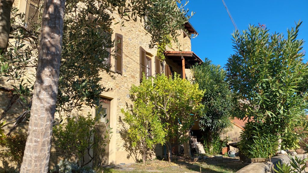 Ein herrlich renoviertes in den Hang gebautes Steinhaus inmitten der ligurischen Berge, umgeben von Olivenhainen und Pinienwäldern.